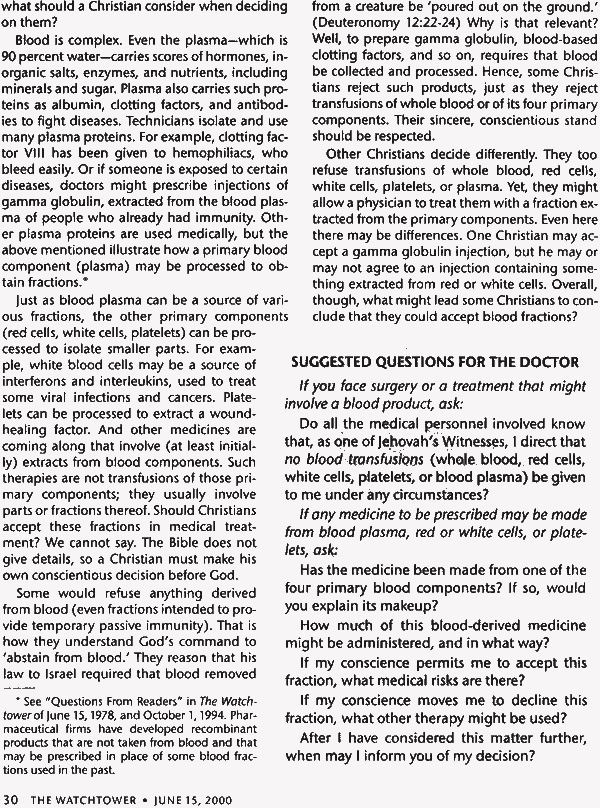 From the Watchtower 6-15-2000 Pages 29 - 31
